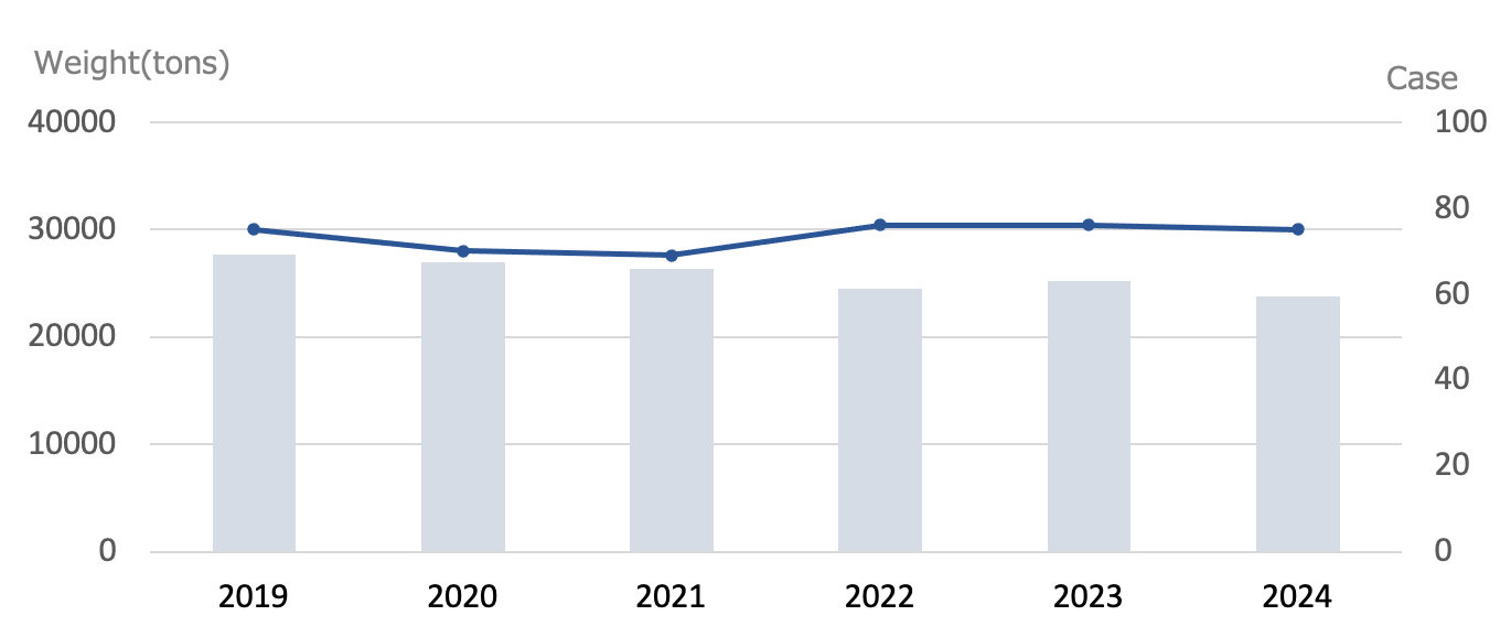At the time of investigation in February 2025, there were 79 cases and 23,880 tons of illegal dumping of ELTs in Japan.