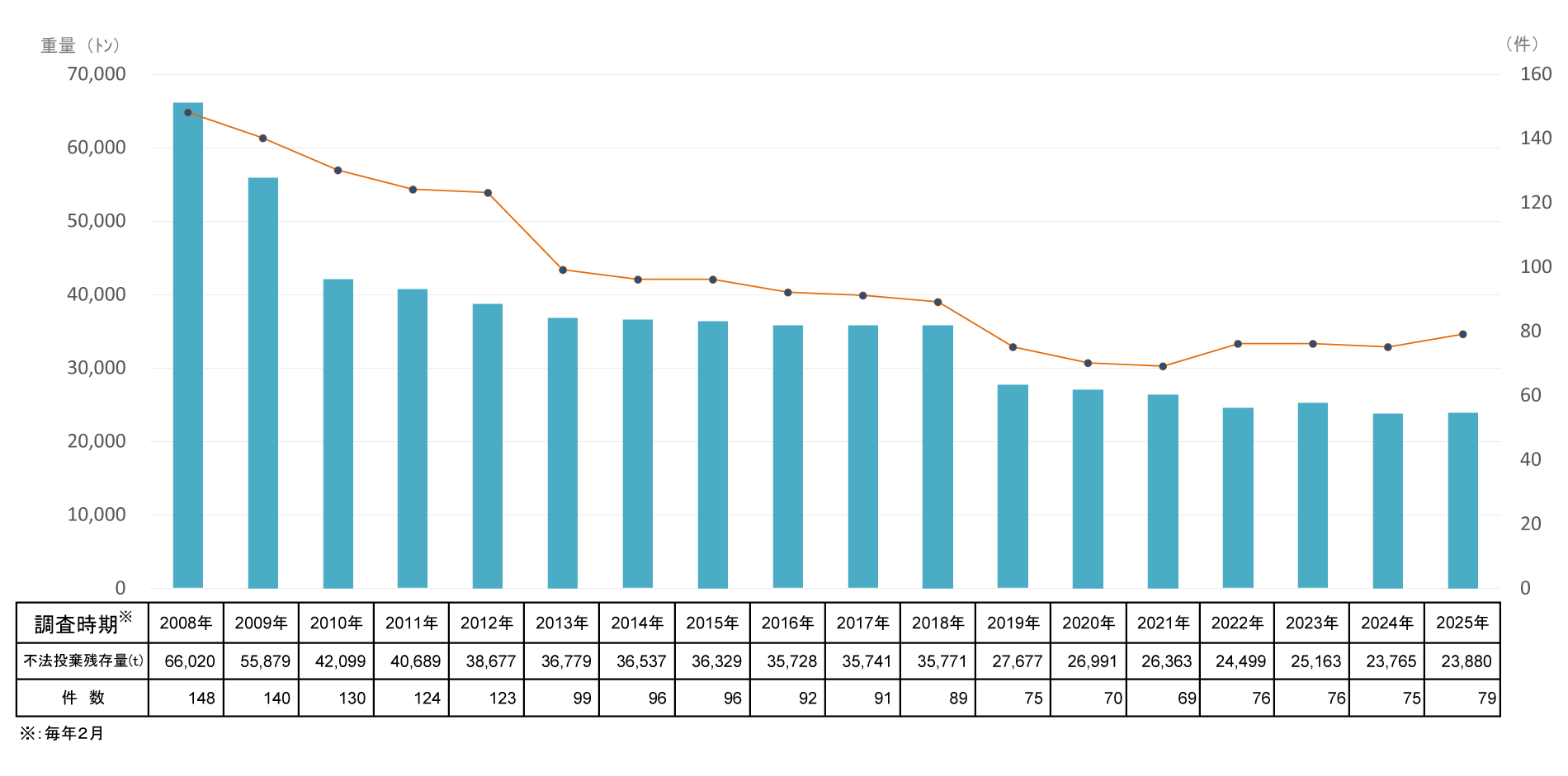 2025年2月調査時の合計数量は、79件、23,880トン。
