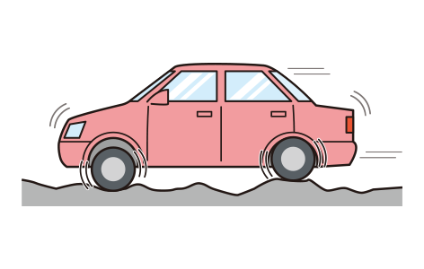 タイヤは、内部に充てんされている空気により、一種の空気バネの働きをしています。そのため、路面からの衝撃を和らげます。