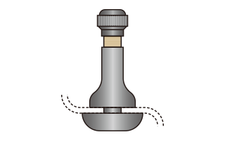 バルブステムのまわりが特殊な形状をしたゴムで覆われており、溝の部分がリムのバルブ穴にピッタリとはまり込んで、空気漏れを防ぎます。