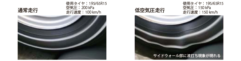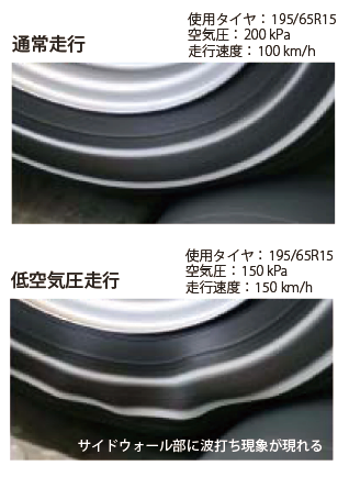 空気圧不足の状態で高速走行した場合に生じるスタンディングウェーブ現象