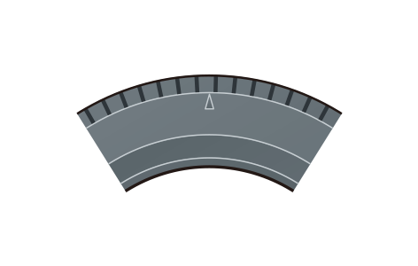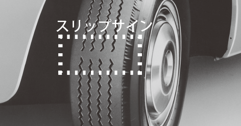 タイヤの使用限度を示すために、接地部の溝に設けられているサイン。タイヤがすり減って残り溝が1.6mmになると溝が途切れこのサインが現れます。