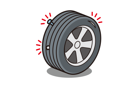 | 亀裂、損傷 | ○タイヤの全周に著しい亀裂や損傷がないかを点検します。また、タイヤの全周にわたり、釘、石、その他の異物が刺さったり、かみ込んでいないかを点検します。 | ||