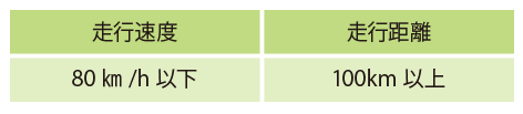 タイヤは、新品時から急激に過酷な条件で使用すると異常発熱による損傷を起こしやすくなります。従って、新品タイヤは右表の目安でならし走行をして下さい。また、タイヤ交換後は、今まで使用していたタイヤと特性が異なる場合があるので、その運動特性に慣れるまで慎重な運転が必要です。