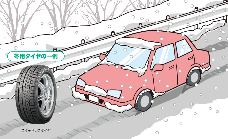 積雪路及び凍結路では都道府県公安委員会制定の道路交通法施行細則(または道路交通規則)により、滑り止めの措置を講ずるよう義務づけられています。冬用タイヤ(スタッドレスタイヤ、シビアスノータイヤ、スノータイヤ)、タイヤチェーン等は滑り止めの措置を講じたものと認められています。