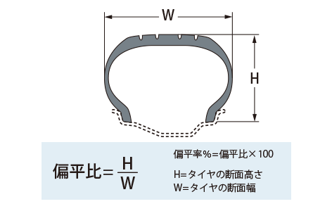 偏平比とはタイヤの断面幅に対する断面高さの比率をいいます。