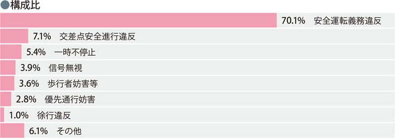 安全運転義務違反が第1位。安全不確認やわき見運転等のちょっとした不注意が事故につながっているようです。