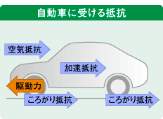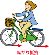 タイヤは回転すると、進行方向と逆向きに生じる抵抗力が起きます。これを転がり抵抗と言います。