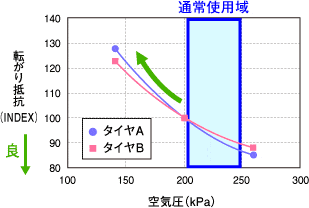 このため、適正範囲以上に空気圧を上げたり、タイヤの性能についても無闇に転がり抵抗の低減を追い求めることのないようにすることが重要です。