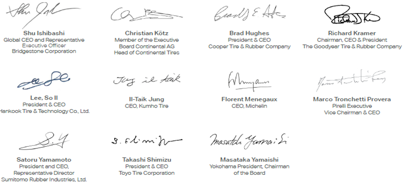 私たちはビジネスリーダーとして、同業他社やその他の利害関係者と協力して、タイヤセクターが今後の持続可能性の課題に対処し、業界が成長し続けることを保証したいと考えています。私たちはリーダーシップを発揮し、創造性を発揮し、知識を共有し、持続可能で回復力のある包括的な未来を実現するための革新的なソリューションを提供したいと考えています。