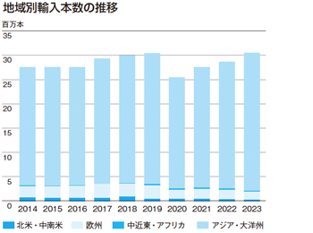 地域別輸入本数の推移