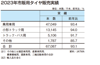 注1) その他とは建設車両用、産業車両用、農業機械用、運搬車用、二輪自動車用の合計 注2) 輸入品を含む |