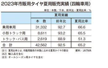 注1) 夏用比率とは、市販用販売の本数に占める夏用タイヤの割合 注2) 輸入品を含む 注3) オールシーズン用タイヤを含む |