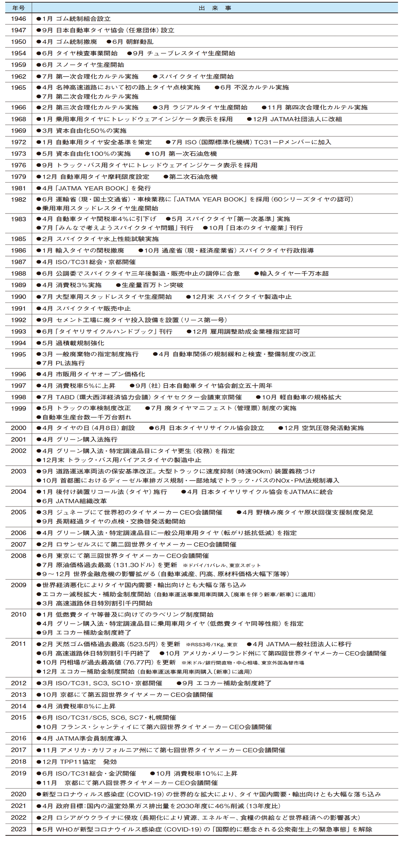 | 1947 | ● 9月 日本自動車タイヤ協会(任意団体)設立 |