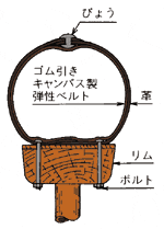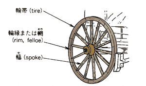 そして驚いたことには、その車輪の外周には動物の皮を被せ、銅の釘で固定したことである。まさに現代のタイヤそのものである。このようなタイヤが約3千年にわたって使われていたが、今から2千年前のローマ時代、ライン河流域のケルト人が木の車輪の外周に鉄の輪を焼き嵌める革新的手法により、鉄のタイヤが出現することとなった。